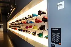 The museum's upper floor exhibits also include the Gas Tank Gallery, formerly part of the Harley-Davidson 100th Anniversary Open Road Tour. The exhibit displays 100 of Harley-Davidson's most memorable tank graphics, spanning 70 years, selected by the company's styling department and reproduced on "Fat Bob" tanks.[5]