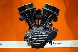 The Panhead is an overhead-valve Harley-Davidson motorcycle engine, so nicknamed because the rocker covers resembled cooking pans. The engine is a two-cylinder, two-valve-per-cylinder, pushrod V-twin, made in both 61 c.i. (EL) and 74 c.i. (FL, FLH) displacements. The Panhead engine replaced the Knucklehead engine in 1948 and was manufactured until 1965 when it was replaced by the Shovelhead.