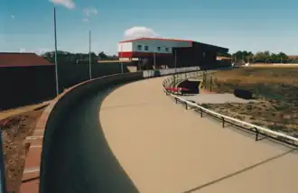 Harlow Stadium opened on Wednesday 15 March 1995. The site chosen for racing was an area north east of the town known as the Pinnacles just off the Roydon Road and directly west of the football stadium. Access to the track is on Stadium Way past the Scimitar industrial park. Toni Nicholls bought the land from receivers when the new football stadium was being built in 1993 and constructed the new facilities including executive suites, a restaurant and conference and banqueting facilities. In addition a large car park was constructed.[3] The first ever trial session, in preparation for the opening was held in October 1994.[4]