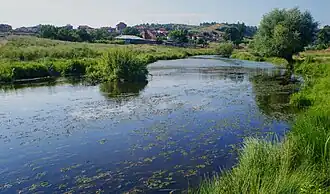 Its drainage basin covers a territory of 956 km2 or 1.8% of the Maritsa's total and borders the drainage basins of the Banska to the north and northwest, the Biserska reka to the southeast and the Arda to the southwest, all of them right tributaries of the Maritsa.[1][2]