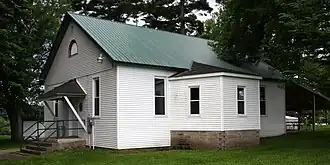 Harmonia Hall is a meeting hall in Waumandee, Wisconsin which was originally used by the Harmonie Gesellschaft, a group of German and Swiss Freethinkers. The Harmonie Gesellschaft, founded in Waumandee 1861, built the hall in 1890 for the group's meetings and events. Joseph Schafer, a carpenter from Arcadia, designed and built the hall in the Mid 19th Century Revival style. The Harmonie Gesellschaft had shrunk in size by the 1930s and consequently began to meet in homes rather than the hall; the group ultimately disbanded in the 1950s. The Town of Waumandee later purchased Harmonia Hall and uses it for events and meetings.[2] The hall was added to the National Register of Historic Places on June 18, 2009.[1]