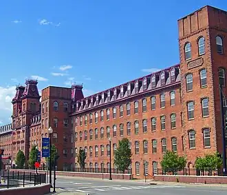 Harmony Mills, in Cohoes, New York, United States, is an industrial district that is bordered by the Mohawk River and the tracks of the former Troy and Schenectady Railroad (now the Mohawk-Hudson bike trail). It was listed as Harmony Mills Historic District on the National Register of Historic Places in 1978. A portion of the district encompassing the industrial buildings and some of the housing built for millworkers was declared a National Historic Landmark in 1999.[2][3] The centerpiece building, Harmony Mill No. 3 was listed on the National Register of Historic Places in 1971.[1]