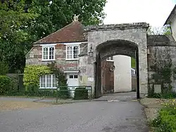 Harnham Gate is a historic gateway in the city of Salisbury in Wiltshire, England.[1] Standing at the southern end of the cathedral close of Salisbury Cathedral, it is also known as the South Gate. It dates back to the fourteenth century and leads to a road connecting the suburb of Harnham on the southern side of the city, across the River Avon. The adjoining gatehouse was rebuilt in the late eighteenth or early nineteenth century. The gateway and gatehouse are now Grade I listed by Historic England.[2]