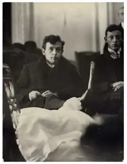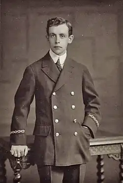 Harold Bride was born in Nunhead, London, England,[1] in 1890 to Arthur Bride and Mary Ann Lowe. The youngest of five children, Bride lived with his family in Bromley. Between 1903 and 1922 the family lived in Ravensbourne Avenue, Shortlands and is commemorated with a blue plaque.[2] After primary school, Bride decided he wanted to become a wireless operator and he worked in his family's business to help pay for training. He completed training for the Marconi Company in July 1911. Working for Marconi, his first sea assignment as a wireless operator was on the SS Haverford;[1] later he worked on the Beaverford, the LaFrance, the Lusitania,[1] and the Anselm.