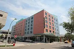 The Hyatt Place hotel portion, which is officially named Hyatt Place Chicago–South/University Medical Centre and has its own underground parking structure, opened on September 17, 2013.[9] The hotel was the first built in Hyde Park in 50 years.[10] Smart Hotels owns the Hyatt portion of the development, which is not for sale.[6]