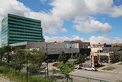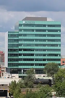 In 2001, the city designated an 84-acre (34.0 ha) area on and around 53rd street as a tax increment financing (TIF) district due to the general underdevelopment and disrepair of properties on the corridor, making the properties eligible for tax incentives.[5] Harper Court sits on a 3.18-acre (1.3 ha) site that the University purchased in 2008.[1] The structure, which has a 131-room Hyatt Place brand Hyatt hotel and a 12-story office tower, includes 150,000 square feet (13,935 m2) of office space, 75,000 square feet (6,968 m2) of retail space and a parking structure with over 500 parking spaces.[1] The building was partially financed by $20 million in TIF funding subsidy as well as land writedowns that bring the total financing assistance to $23.5 million.[6][7] The TIF funds will not be allocated by the city until Harper Court has been declared completed.[8] The Hyatt hotel received a separate $5.2 million subsidy from the Chicago City Council.[2]