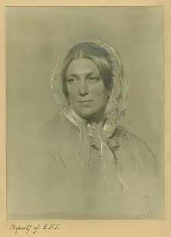 Life in the Sickroom is considered to be one of Martineau's finest works. It upset evangelical readers, as they "thought it dangerous in 'its supposition of self-reliance'".[49] This series of essays embraced traditional womanhood. While it was supposed by contemporary readers that Martineau dedicated it to Elizabeth Barrett, as it was "an outpouring of feeling to an idealized female alter ego, both professional writer and professional invalid- and utterly unlike the women in her own family", Elizabeth Barrett Browning confirms in a letter that this was not the case: "the dedication of Miss Martineau’s beautiful book was not to me—& both she & I have had to say so again & again."[50] Written during a kind of public break from her mother, this book was Martineau's proclamation of independence.[3]