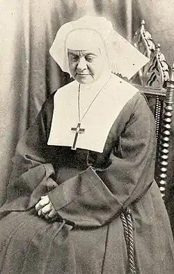In 1868, Mother Cannon, renowned for her good humor, established a school as well as headquarters for the new community on a site overlooking the Hudson River in Peekskill, New York.[6] Novices, sisters and Mother Cannon (when she was not traveling) lived in a converted farmhouse on the site for decades as the complex was slowly built. Hannah Grier Coome, trained by the order in Peekskill and New York City, took religious vows at the Peekskill motherhouse on a Marian feastday in 1884, and returned to Canada to found a similar order, the Sisterhood of St. John the Divine. In 1892, St. Gabriel's chapel was dedicated in Peekskill, overlooking the Hudson River and built from stone quarried onsite.[7]