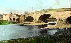 Harrington Bridge crosses the River Trent near Sawley in Derbyshire carrying the Tamworth Road (B6540) into Leicestershire. The stonework of the bridge dates from 1790, but the central section was replaced in 1905 after it was damaged by flood water. The central section is the only part of the bridge that is not a listed building.[1]
