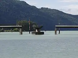 There are a number of stream gauges measuring water levels and discharge along the Harrison River and Harrison Lake. The most downriver discharge-measuring gauge is located at Harrison Hot Springs, just below Harrison Lake. The river's mean annual discharge according to this long-operating gauge is 442 cubic metres per second (15,600 cu ft/s).[4] However, the Chehalis River joins the Harrison below this gauge, near Harrison Mills. According to a gauge on the Chehalis River near Harrison Mills that river's mean annual discharge is 39.1 cubic metres per second (1,380 cu ft/s).[5] Thus the mean annual discharge of the Harrison River at its mouth on the Fraser River is at least 481.1 cubic metres per second (16,990 cu ft/s).