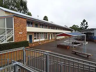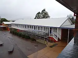 Toowoomba was an early centre for education, with the first National School (later known as Toowoomba South State School) opening in 1865.[3] National schools, established in 1848 in New South Wales, were continued in Queensland following the colony's separation in 1859. Following the introduction of the Education Act 1860, Queensland's national and public schools grew from four in 1860 to 230 by 1875.[5] The State Education Act 1875 provided for free, compulsory and secular primary education and established the Department of Public Instruction. Schools became a community focus, a symbol of progress, and a source of pride, with enduring connections formed with past pupils, parents, and teachers.[6][7][1]