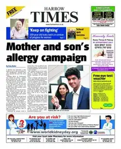Harrow Times is a British weekly local newspaper published by Newsquest, covering the London Borough of Harrow and surrounding areas.[3]