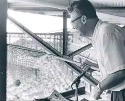 Immediately preceding the Cardinals job, Caray announced hockey games for the St. Louis Flyers, teaming with former NHL defenseman Ralph "Bouncer" Taylor. On one occasion, Taylor temporarily ended his retirement when he volunteered to play goalie for the Flyers in a regular season game with the team from Minnesota. Caray was also seen as influential enough that he could affect team personnel moves; Peter Golenbock (in The Spirit of St. Louis: A History of the St. Louis Cardinals and Browns) has suggested that Caray may have had a partial involvement in the maneuvering that led to the exit of general manager Bing Devine, the man who had assembled the team that won the 1964 World Series, and of field manager Johnny Keane, whose rumored successor, Leo Durocher (the succession didn't pan out), was believed to have been supported by Caray for the job. Caray, however, stated in his autobiography that he liked Johnny Keane as a manager, and did not want to be involved in Keane's dismissal.[5] As the Cardinals' announcer, Caray helped broadcast three World Series (1964, 1967, and 1968) on NBC.[6] He also broadcast the 1957 All-Star Game (played in St. Louis) on NBC Radio, and had the call for Stan Musial's 3,000th hit on May 13, 1958.