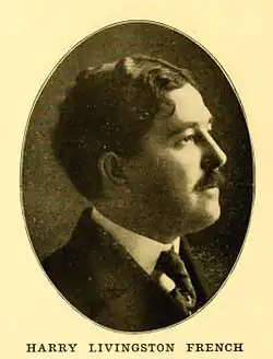 Harry Livingston French was born at Plymouth, Pennsylvania, on November 21, 1871, the son of politician, author, and building contractor Samuel Livingston French and his wife, Harriet Seville Turner.[1] French attended Cornell University, where he was editor of The Cornellian (Cornell's annual yearbook), a member of the junior honorary society Aleph Samach, and a member of the senior honor society Sphinx Head. He also joined the Phi Kappa Psi fraternity and through that organization became a member of the Irving Literary Society. He graduated in 1894 with a Bachelor of Science in Architecture.[2]