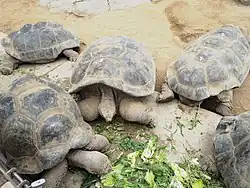 Of the many animals he helped acquire for the zoo, he had a particular passion for turtles and tortoises.[9][47] He traded for them at many zoos during his travels in order to build up a large collection at the San Diego Zoo, and decorated his office with many likenesses of them.[9][47] On one occasion he complained to a visiting New York zoo official that the man had not sent him any turtles; after spending a few minutes in the zoo, the visitor returned to Wegeforth exclaiming that the zoo had some 48 turtle basins, and probably the largest collection of turtles in the world.[9]