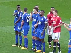 On 15 June 2017, Maguire signed for Premier League club Leicester City on a five-year contract for an initial £12 million fee, potentially rising to £17 million with add-ons.[35] He made his debut on 11 August as the season began with a 4–3 loss away to Arsenal,[36] and eight days later he scored his first goal for Leicester, heading in Riyad Mahrez's corner to conclude a 2–0 home win over Brighton & Hove Albion.[37] He played in every minute of the 2017–18 season and was awarded Player of the Season, as well as Players' Player of the Season at the club's end of season awards.[38]