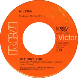 Later that year, Nilsson went to England with producer Richard Perry to record what became the most successful album of his career, Nilsson Schmilsson, which yielded three stylistically different hit singles. The first was a cover of Badfinger's song "Without You" (by British songwriters Pete Ham and Tom Evans), featuring a highly emotional arrangement and soaring vocals to match – recorded, according to Perry, in a single take. It was alleged, by Harry himself, that, upon hitting the highest note of the song, he burst a large haemorrhoid.[11] The performance earned him his second Grammy Award.[15]
