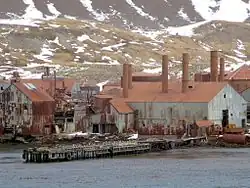 - ^ Leith Harbour was established as both a base for the whaling vessels, and a processing plant for the catches; however, Christian Salvesen & Co. processed their catches at sea on two floating factory ships before returning the whale products to the northern hemisphere for use. A photo essay on the recent state of the now-derelict shore facilities (which closed in 1965) is available here.[6]