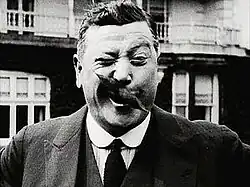Greater success came with his comedy sketch, "Motoring", which he introduced in 1902 and in which he played the part of a new car owner trying to repair it. He soon decided to abandon mimicry and concentrate on sketches, most of which he wrote with Wal Pink.[3] His other sketches included "Running an Office", "Selling a Car", "Billiards", and "Fishing". Tate's sketches "presented him as a blustering – if basically good-humoured – incompetent, convinced that he was in charge of the situation, but never failing to increase the chaos which surrounded him."[4] He toured with a company of six performers, at first including Tom Tweedly and Harry Beasley.[4] He also appeared in West End revues,[2] and appeared in four Royal Variety Performances, in 1912, 1919, 1925, and 1938.[5]