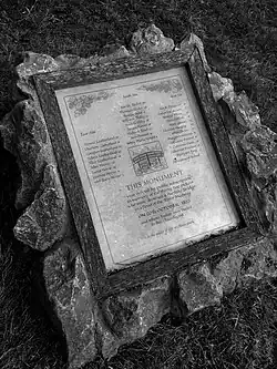The deceased were buried in the nearby St Mary's Church, where a monument in the form of an oast house has been erected.[7] The monument is Grade II listed.[8] The full cost of the burial was borne by the parish of Hadlow, the Medway Navigation Company refusing to contribute. In October 2013, on the 160th anniversary of the disaster, a new plaque carrying the names of the dead was added to the by now weathered memorial.[9] The name of the youngest victim, a two-year-old girl, remains unknown as her parents died with her in the accident.[2]