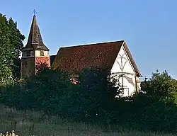 St.Mary Church is flint with a Tile hung North Tower. It was essentially reconstructed by Gilbert Scott in 1868–69. It still has, as noted by Pevsner “one tremendous original feature, the early C14 timbers of the West Wall.”[2] The fourteenth century church is Grade I listed.[3]