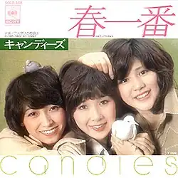 "Haru Ichiban" (春一番; "Spring's First Breeze") is the ninth single by Japanese music trio Candies. Written by Yūsuke Hoguchi, the single was released on March 1, 1976. The single is a rearranged version of the song originally from the 1975 album Toshishita no Otokonoko. Since its release, "Haru Ichiban" has become the trio's signature song.[1]