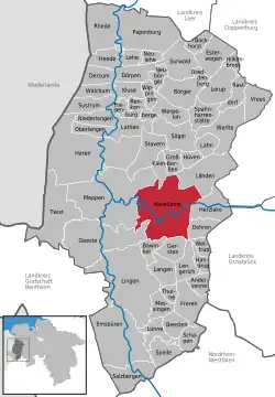 Haselünne (German pronunciation: [ˈhaːzl̩ˌʏnə] ⓘ) is a town in Lower Saxony, Germany, in the district of Emsland. It is situated on the river Hase, approx. 15 km east of Meppen.