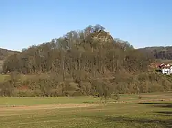 Haselstein Castle (Burg Haselstein) is a ruined hill castle near the village of Haselstein in Nüsttal in the county of Fulda in Hesse, Germany. It lies next to the village on a steep basalt cone at a height of 434 m above sea level (NN). The rock was first mentioned in 780/781 as the Haselahastein.