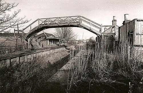 The station opened in March 1850 by the North British Railway. The station was situated on the south side of the B6405. The goods yard was on the up side of the line, entered from the south. It consisted of two sidings, one serving a small loading dock and a brick goods shed the other serving a cattle dock. Goods services ceased on 28 December 1964. The station was downgraded to an unstaffed halt on 27 March 1967, although the suffix 'halt' was never shown in the timetables. The station was closed to passengers on 6 January 1969.[1][2]