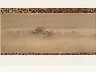 - Evening bell from mist-shrouded temple attributed to Muqi Fachang Enji banshō-zu (煙寺晩鐘図 伝 牧谿筆), ink on silk,[6] Southern Song, China.