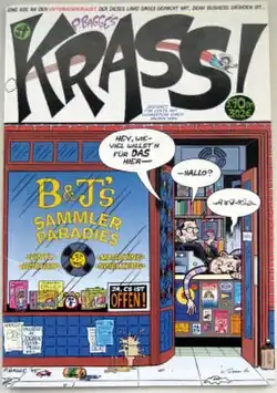 In Germany The first fifteen issues of Hate were translated for the German market and published by Carlsen Comics under the title Leck Mich! (literal: lick me!, possibly most closely translates to "kiss it!" as in kiss my ass). Later color editions of Hate were issued in 1998 by Jochen Enterprises under the title Krass/Kraß (a slang term, meaning phat, cool or rad – its conventional meaning is crass). It ran for seven issues before Jochen ceased trading. Bagge sanctioned the creation of new Buddy stories for the German edition, by artists such as Philip Taegert and Guido Sieber. Sieber moved the characters of Buddy and Lisa from Seattle to Berlin.[5]