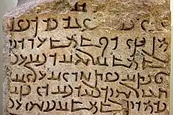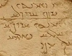 The stone inscriptions bear witness to an effort to establish a monumental script. This script is little different from that of the Aramaic inscriptions of Assur (possessing the same triangular š, and the use of the same means to avoid confusion between m, s, and q). The ds and the rs are not distinguished from one another, and it is sometimes difficult not to confuse w and y.