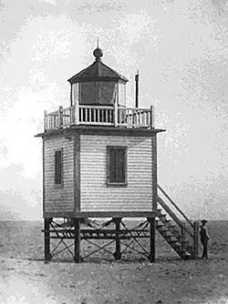 The beacon was established in 1855, and was moved several times over the course of its career; due to its exposed position, it took the brunt of many storms that blew in from the Atlantic Ocean. It was a short, square tower constructed of wood. Little else is known about it, except that it was the responsibility of the Third Assistant Keeper at Cape Hatteras, working under the head keeper's supervision.