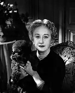 In 1909, she launched a hat-making business with Rose Roth.[4] Roth was a dressmaker and Carnegie designed hats.[2] By 1919, Roth had left the business and Carnegie was the sole proprietor of Hattie Carnegie, Inc.[1][2][4][5] At this point, Carnegie had a working capital of $100,000.[4] She began travelling to Paris to buy original dresses to both sell in her shop and use as inspiration for her own designs.[2] In 1925, Carnegie was successful enough to buy a building just off Park Avenue at 42 East 49th Street.[6] By 1929, the business had sales of $3.5 million a year.[4] When spending decreased during the Great Depression, Carnegie created a less expensive line called Spectator Sports.[2]