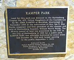 The 40 acres (16 ha) for Kamper Park was donated to the Daughters of the Confederacy by John Kamper in 1902, and was given in turn to Hattiesburg in 1908 for a public park. The zoo was opened on about 12 acres (4.9 ha) of the 40-acre (16 ha) park in 1950. In 2025, the Zoo presented a year-long 75th Anniversary celebration.