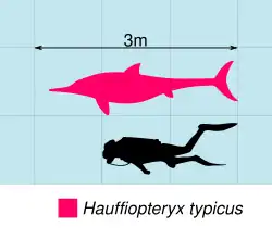 Hauffiopteryx is a relatively small ichthyosaur, reaching 2–3 m (6.6–9.8 ft) in length.[1][3]