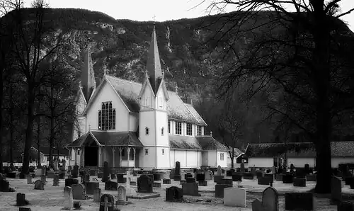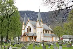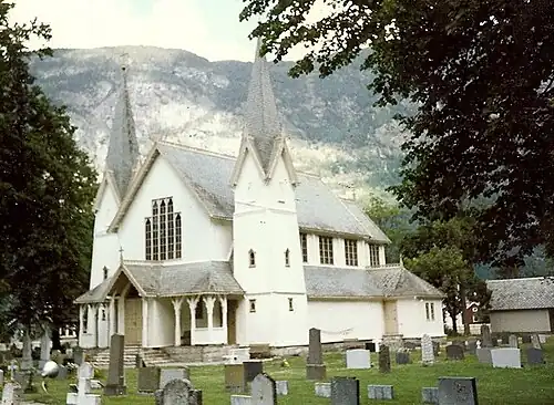 Hauge Church (Norwegian: Hauge kyrkje) is a parish church of the Church of Norway in Lærdal Municipality in Vestland county, Norway. It is located in the village of Lærdalsøyri. It is the church for the Hauge parish which is part of the Sogn prosti (deanery) in the Diocese of Bjørgvin. The wooden church is painted white with brownish-yellow trim. It was built in a long church design in 1869 using plans drawn up by the architect Christian Christie. The church seats about 500 people.[1][2]