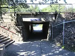 When Østfold Line opened in 1879 it followed a more westerly right-of-way through Holm. The line passed over Ljansdalen on the Ljan Viaduct. The ground conditions were poor through Holm and the Norwegian State Railways therefore decided to build a new rote via Hauketo.[1] This opened on 15 February 1925.[2]