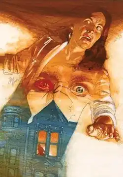 Haunted House was released in February 1982.[5] The artist for the cover art and manual was Steve Hendricks. Hendricks stated that the art used within the game's manual was initially going to be the game's cover art. After receiving approval for the design, he was told by a member of Atari's marketing department that the art was going to be rejected due to the location of eyes over the chest of the person.[21]