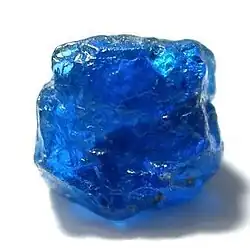 Hauyne or haüyne, also called hauynite or haüynite (/ɑːˈwiːnaɪt/ ah-WEE-nyte),[7] old name Azure spar,[8]: 571 is a rare tectosilicate sulfate mineral with endmember formula Na3Ca(Si3Al3)O12(SO4).[1] As much as 5 wt % K2O may be present, and also H2O and Cl. It is a feldspathoid and a member of the sodalite group.[4][5] Hauyne was first described in 1807 from samples discovered in Vesuvian lavas in Monte Somma, Italy,[9] and was named in 1807 by Brunn-Neergard for the French crystallographer René Just Haüy (1743–1822).[4] It is sometimes used as a gemstone.[10]