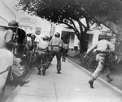 The 1957 Havana Presidential Palace attack was a failed assassination attempt on the life of President Fulgencio Batista at the Presidential Palace in Havana, Cuba. The attack began at around 3:30 pm on March 13, 1957, carried out by Menelao Mora, a group of members of the Partido Auténtico, and the student opposition group Directorio Revolucionario 13 de Marzo, but was unsuccessful in its goal of killing Batista.[2] According to one of the group's founding members, Faure Chomón, they were following the golpe arriba strategy and sought to overthrow the government by killing Batista.[3]