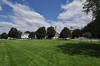 The Haverhill Corner Historic District encompasses the early civic center of Haverhill, New Hampshire, United States. The district is focused on the junction of New Hampshire Route 10 and Court Street, which was historically a major through route. Court Street is flanked at the junction by a pair of large grassy common areas which are bounded by School Street and Route 10. Buildings, predominantly Federal in character and built in the late 18th and early 19th centuries, are arrayed around these commons, and historic buildings line Route 10 and Court Street for a short distance away from the commons. Prominent buildings in the district include the 1827 Federal-style First Congregational Church, the 1840 former courthouse that now houses the public library and local historical society, and the Romanesque Revival 1897 Haverhill Academy Junior High School building. The area declined in importance after the railroad bypassed it, resulting in the gradual relocation of civic functions to the Woodsville area.[2] The district was listed on the National Register of Historic Places in 1987.[1]