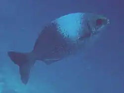 - ^ Keiichi Sakai and Tetsuji Nakabo (2004). "Two new species of Kyphosus (Kyphosidae) and a taxonomic review of Kyphosus bigibbus Lacepède from the Indo-Pacific". Ichthyological Research. 51 (1): 20–32. doi:10.1007/s10228-003-0186-2.