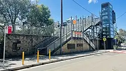 At the northern end of the platform there is a steel truss footbridge dating from the early 20th century, though somewhat modified with the addition of an upper half truss, steel beams and concrete deck and stairs (dating from the late 20th century). The footbridge goes from Brooklyn Road in the east, across the lines to the platform and the wharf.[4]