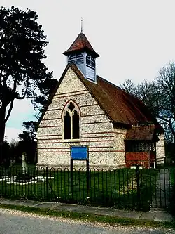 St Mary's Church was first mentioned in 1227. During the 19th century it fell into disrepair and was rebuilt in 1856 by the church architect William White, using original flint-and-brick materials and in a style peculiar to the 1850s known as 'constructional polychromy'.[13] The church has retained its 13th century circular font.[14] Oliver Cromwell ordered that church organs be removed in 1644. Churches relied on bands comprising local musicians to provide accompaniment until organs were reintroduced in the 19th century. An old bassoon made around 1800 and played at St Mary's was found during refurbishment of the church and is now to be found in Buckinghamshire County Museum Aylesbury.[15]