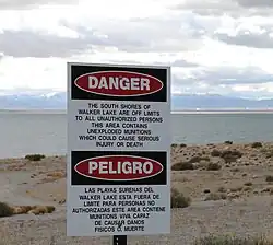 Hawthorne Army Depot (HWAD) is a U.S. Army Joint Munitions Command ammunition storage depot located near the town of Hawthorne in western Nevada in the United States. It is directly south of Walker Lake. The depot covers 147,000 acres (59,000 ha) or 226 square miles (590 km2) and has 600,000 square feet (56,000 m2) storage space in 2,427 bunkers. HWAD is the "World's Largest Depot". It is divided into three ammunition storage and production areas, plus an industrial area housing command headquarters, facilities, engineering shops, etc.[1]