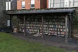 Between 1904 and 1906 the castle was rented by the Morell family, after which it was occupied by the Dowager Lady Glanusk.[13] The architect W. D. Caröe was employed to restore the house in 1910 and it was sold to the banker Benjamin Guinness in 1937.[13] A major fire then destroyed the interior of the eastern side of the castle in 1939.[23] Around 1961, the castle was acquired by Richard Booth who used it as a bookstore and as a location for parties, with a holiday cottage in the grounds.[24] Much of the walled garden was sold for development in 1975, and another fire in 1977 destroyed the interior of the western half of the castle: repairs were carried out from the 1980s onwards.[25]
