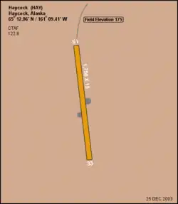 - ^ "HAY - Haycock Airport - FAA information effective 30 August 2007". FAA data republished by AirNav. Archived from the original on 14 September 2007.