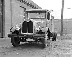 Throughout the late 1930s, Hayes was a distributor of British-made Leyland trucks, and the Leyland trucks supplemented Hayes' range of trucks.[6] The company also used Leyland's components for the trucks.[6] Hayes merged with Lawrence Manufacturing, a logging equipment manufacturer, in 1946, and was called Hayes-Lawrence.[7] Three employees – Vic Barclay, Mac Billingsley and Claude Thick – left the management division of Hayes to start Pacific Truck & Trailer Co. in 1947.[6] In the early 1950s, the company started manufacturing a range of on-road trucks.[8] The Signal Company, the parent firm of Mack Trucks, acquired a two-thirds share in Hayes Manufacturing in 1969,[9] and Hayes began a mass expansion;[10] production increased from fifty trucks a year to 500 trucks a year.[11] The company was renamed Hayes Trucks in 1971.[12] The company at its peak in the late 1960's had 600 employees and three plants, which all were located in Vancouver.[1] In 1975, Signal sold the company to Gearmatic Co., a subsidiary of Paccar, which closed the Hayes plants and stopped production.[13] The Canadian Bank Note Company made 1 million Hayes truck stamps as part of the Historic Land Vehicles series.[14]
