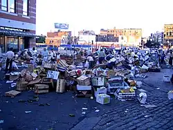 Conflicts between Haymarket vendors and the City of Boston have arisen at times over issues including trash and truck parking. A 2005 Boston Globe article[24] quoted then-Mayor Thomas Menino: "Haymarket is part of the uniqueness of Boston. My parents took me there when I was a kid. I wouldn't want the vendors to not be part of the Boston landscape. We want people to be able to buy affordable fruit and vegetables. But [the vendors] have to meet us halfway. They can't continue to live outside the rules. We have to have constructive dialogue with them."